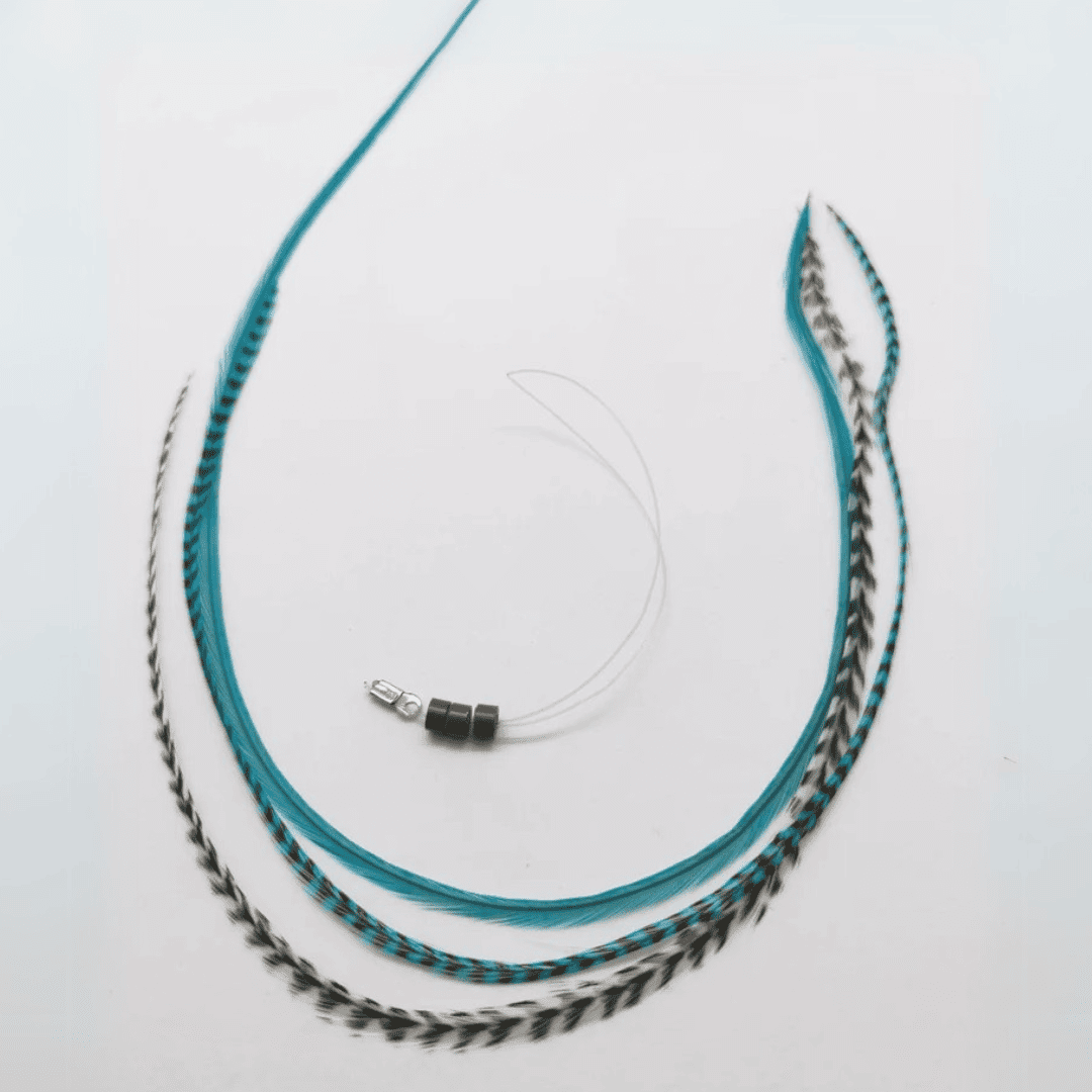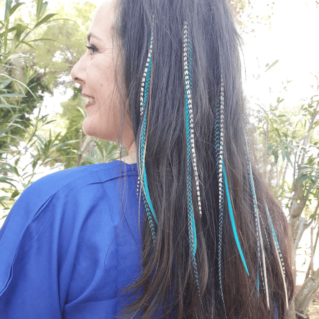Ajoutez une touche fraîche, vibrante et créative à votre coiffure avec ce pack de 3 extensions en plumes naturelles de couleur turquoise. Sa teinte entre le bleu et le vert est parfaite pour se démarquer avec style en toute occasion : d’un look quotidien avec personnalité à des tenues de festival, des séances photo ou des événements spéciaux.