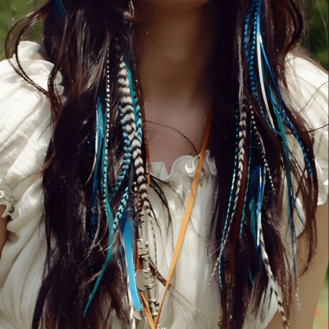 Les plumes sont 100 % naturelles, sélectionnées à la main pour leur douceur, leur forme et leur couleur. Avec une longueur allant de 28 cm à plus de 35 cm, elles sont fines, légères et flexibles, idéales pour être portées comme mèches décoratives. Elles s’intègrent parfaitement aux cheveux sans être remarquées, apportant du mouvement et un effet visuel saisissant sans effort.