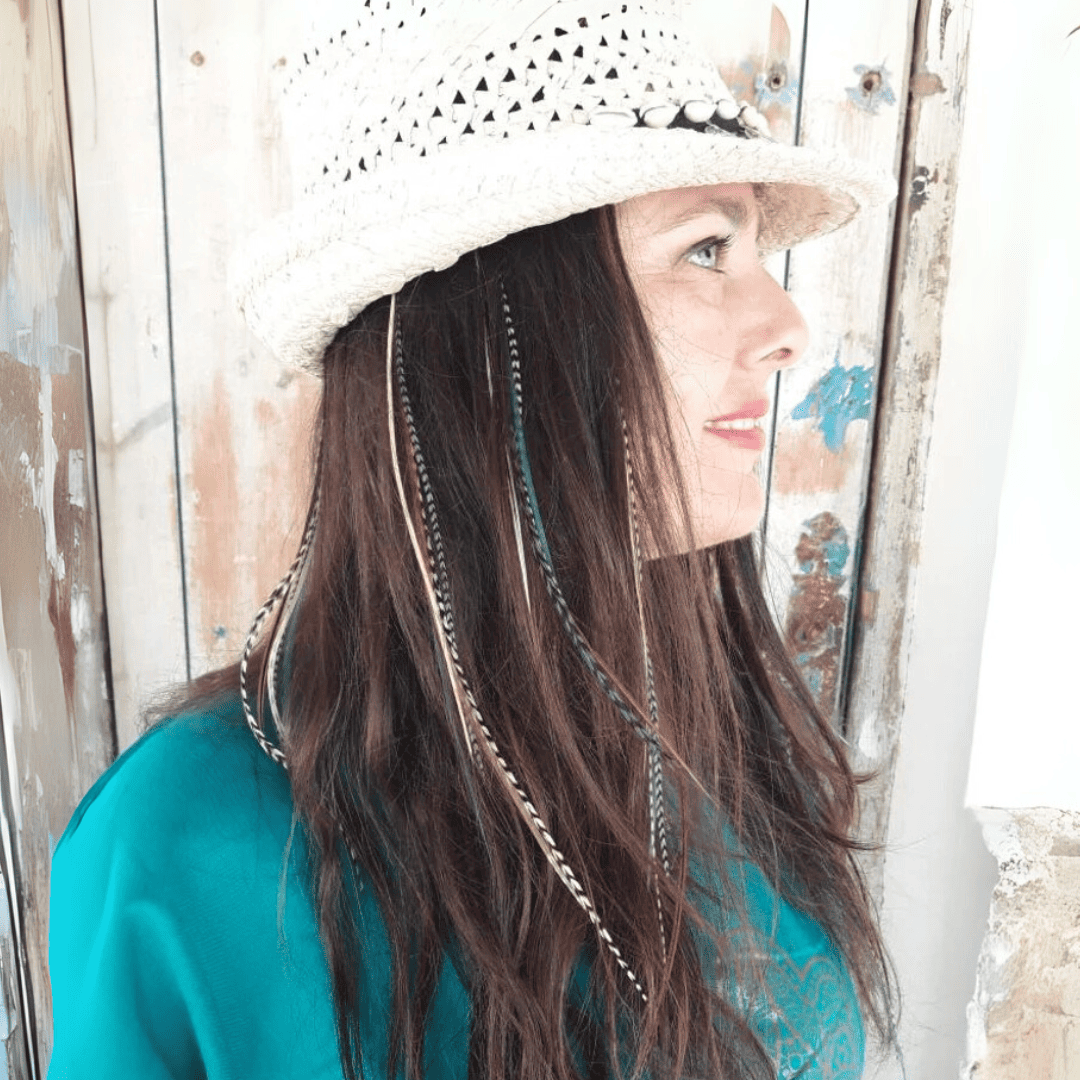 Chaque plume est 100 % naturelle, sélectionnée à la main pour sa qualité, sa douceur et sa beauté. Elles mesurent entre 28 cm et plus de 35 cm, et leur forme fine et souple permet de les intégrer facilement à tout type de cheveux. Légères et confortables, ces plumes se fondent naturellement dans votre chevelure et apportent mouvement et couleur sans l’alourdir.